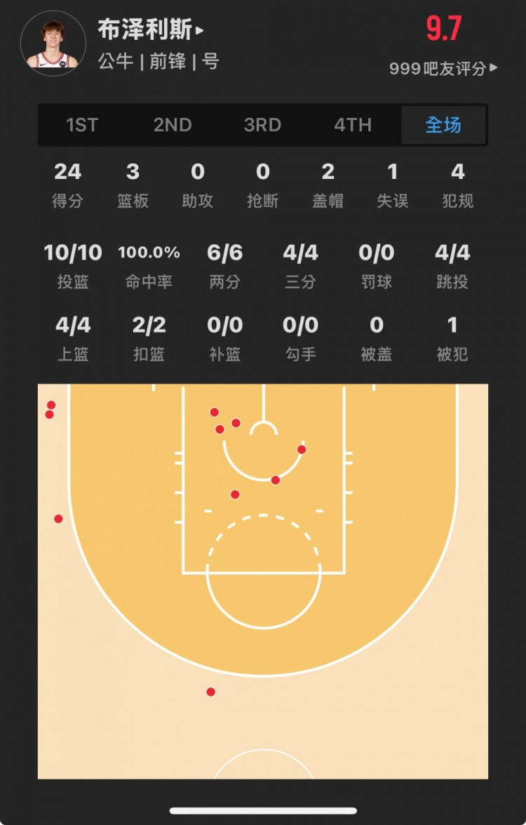 公牛11號(hào)秀 馬塔斯-布澤利斯 登場(chǎng)31.0分鐘