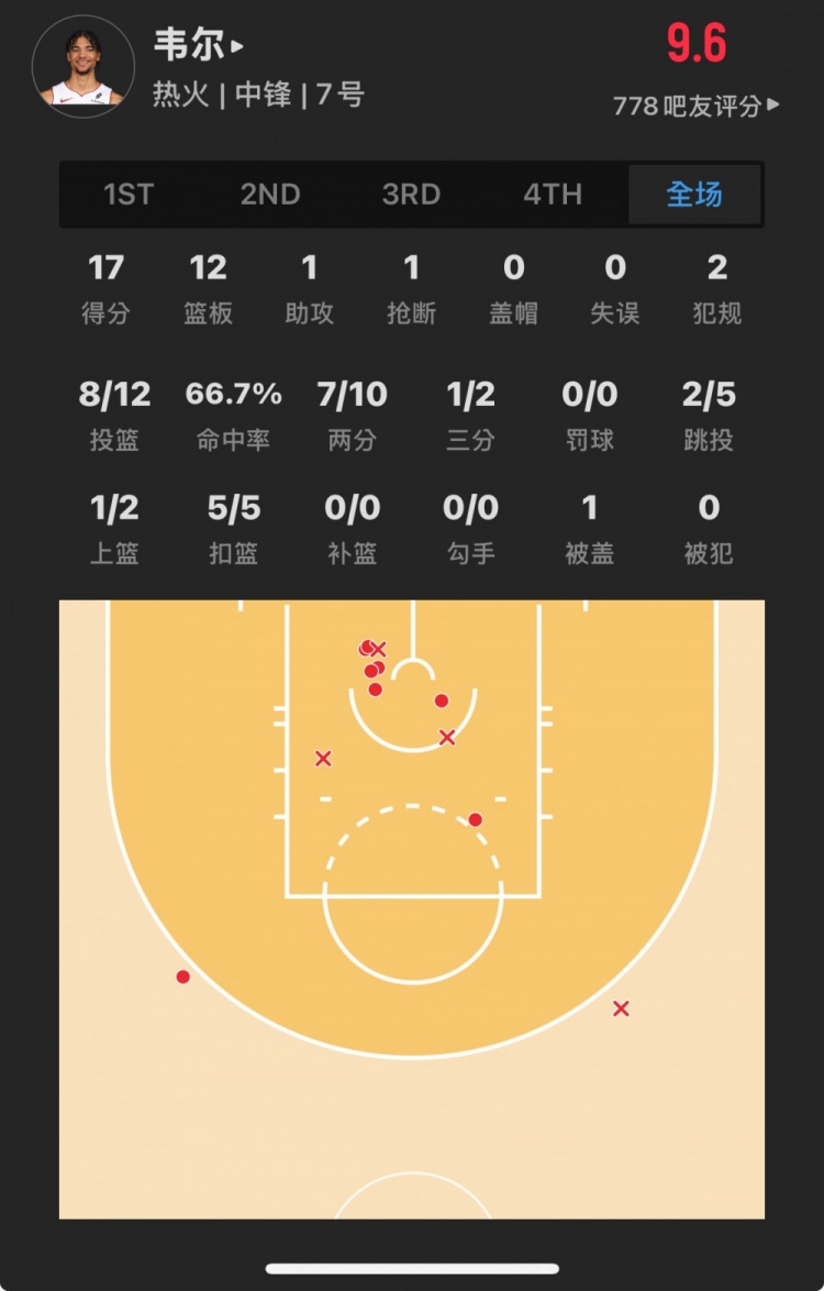 熱火15號(hào)秀 克雷爾-韋爾 登場(chǎng)30.7分鐘