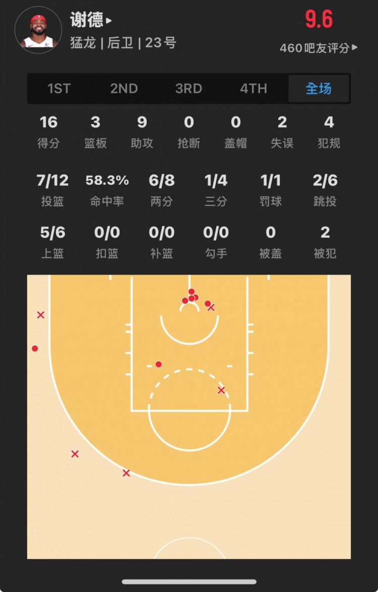 猛龍45號(hào)秀 賈馬爾-謝德 登場(chǎng)23.1分鐘