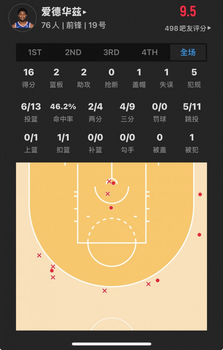 76人41號(hào)秀 阿德姆-博納 登場(chǎng)7.7分鐘