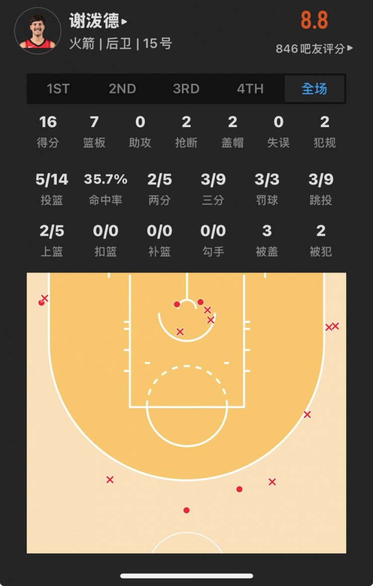 火箭探花秀 里德-謝潑德 登場(chǎng)27.9分鐘