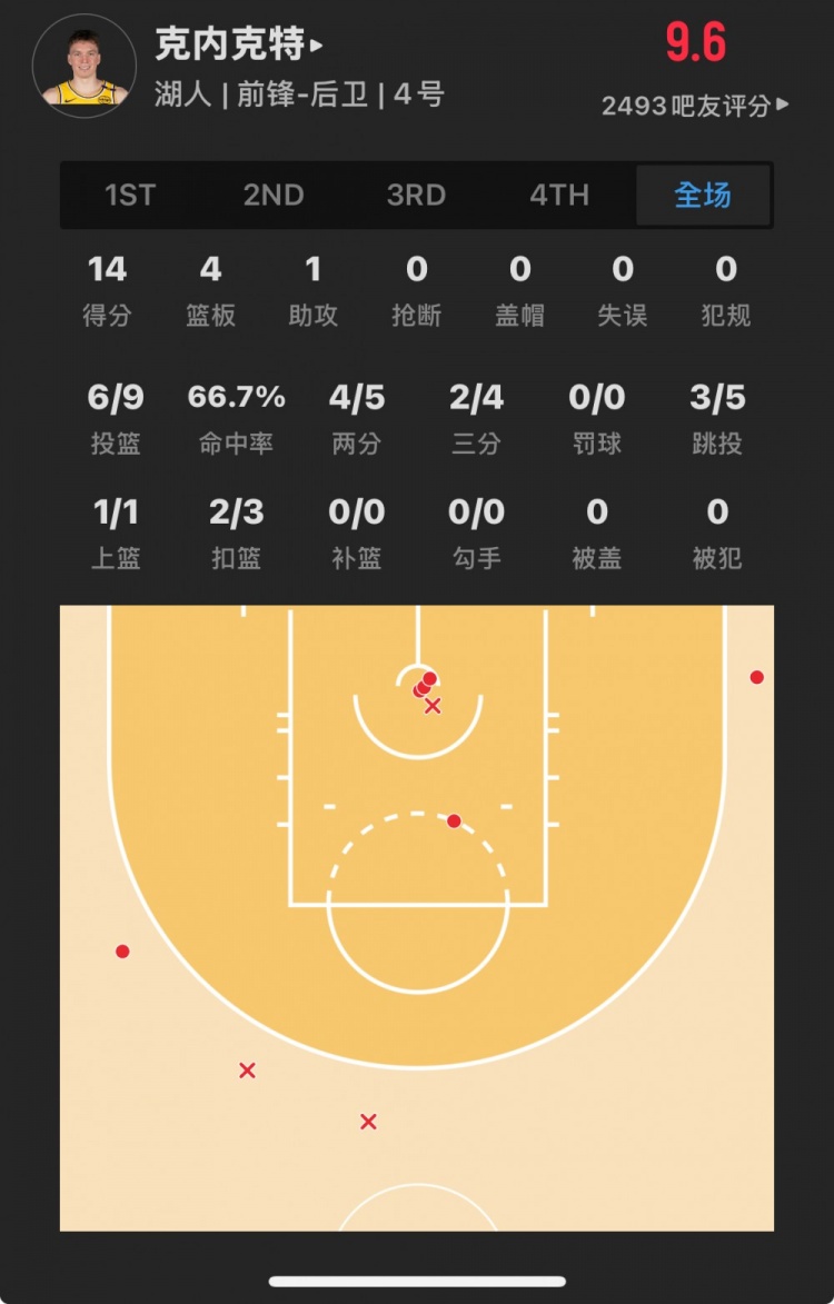 湖人17號(hào)秀 道爾頓-克內(nèi)克特 登場(chǎng)20.8分鐘