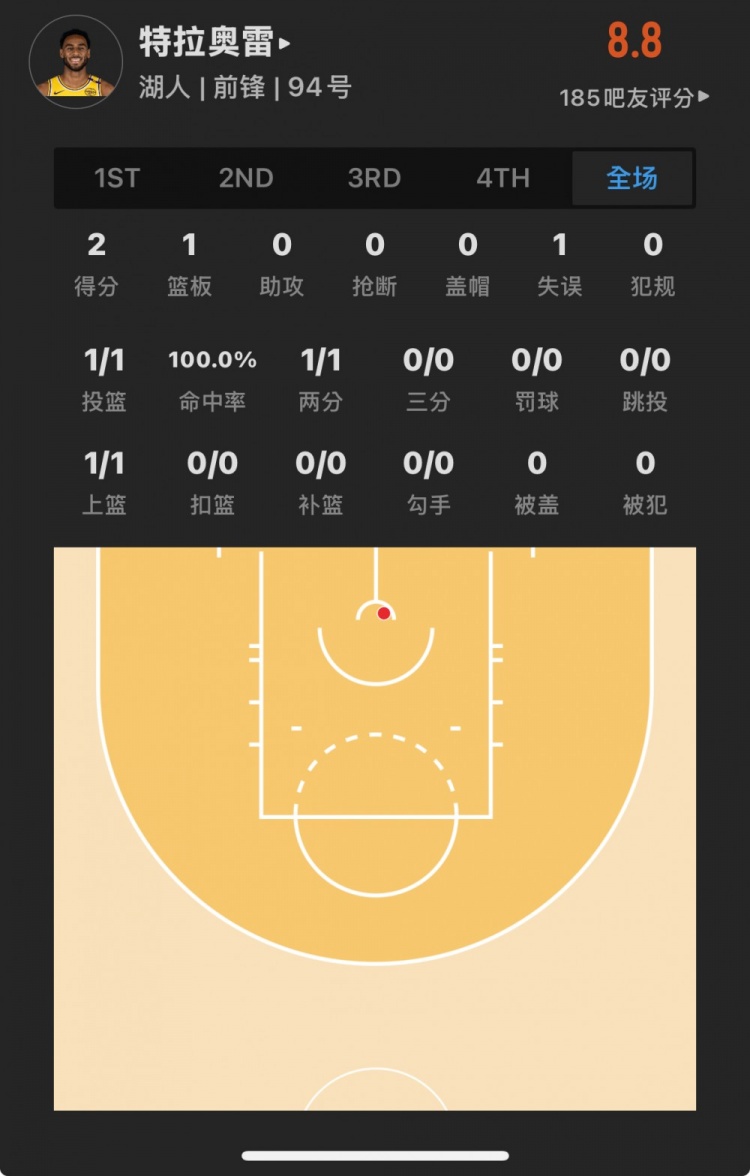 湖人落選秀 阿爾梅爾-特拉奧雷 登場(chǎng)5.4分鐘