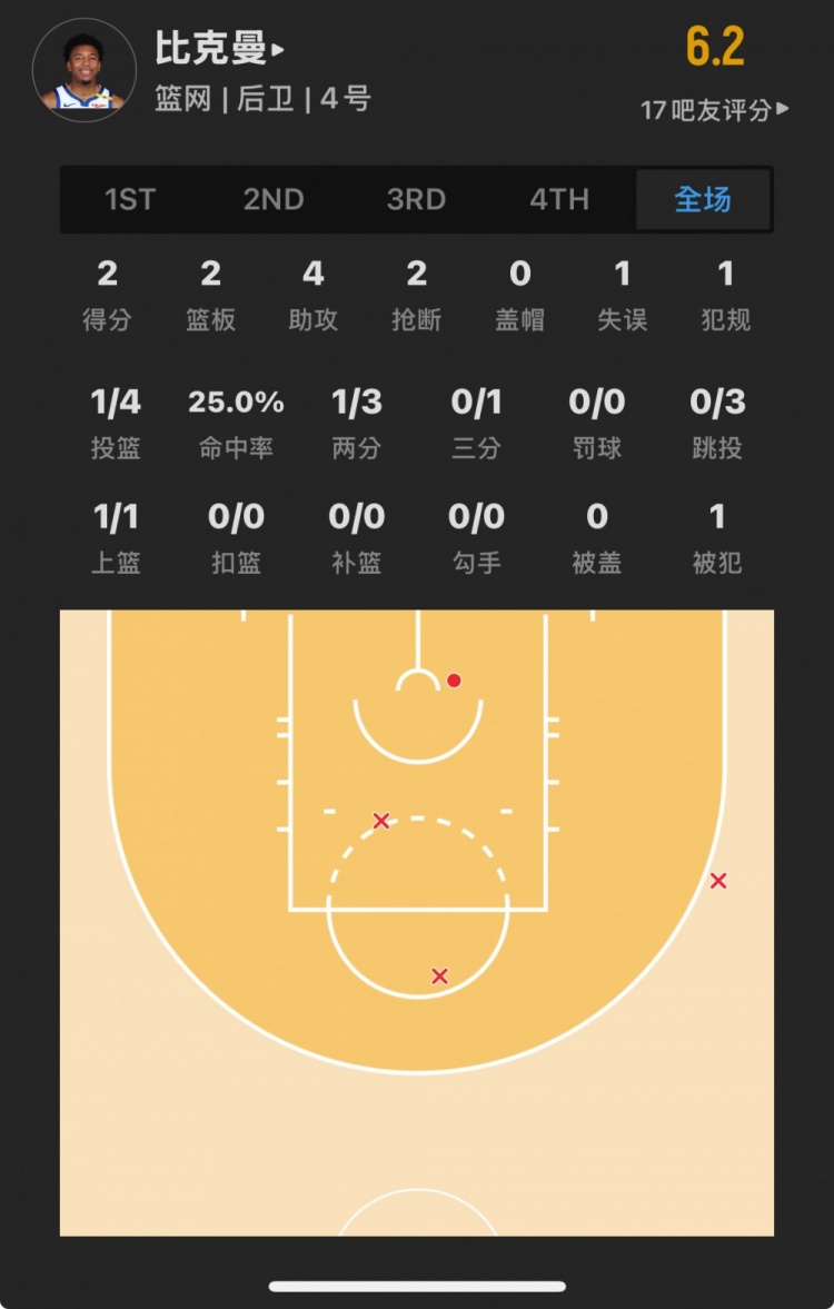 籃網(wǎng)落選秀 里斯-比克曼 登場(chǎng)21.6分鐘