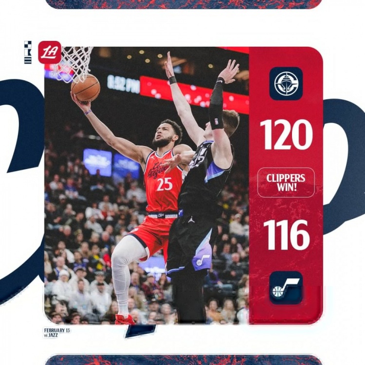2月14日訊 NBA常規(guī)賽,快船加時(shí)120-116險(xiǎn)勝爵士。