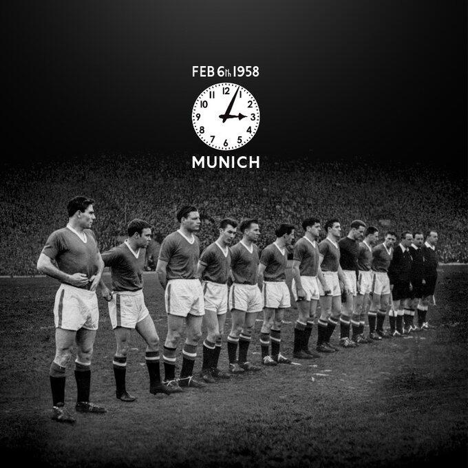 1958年2月6日,載著曼聯(lián)隊(duì)員和球迷以及隨隊(duì)記者的飛機(jī)在西德慕尼黑機(jī)場覆有積雪的跑道上第三次嘗試起飛時(shí)失敗墜毀,機(jī)上當(dāng)時(shí)44名乘客以及機(jī)組人員中的23人不幸遇難,遇難者包括8名曼聯(lián)球員以及3名俱樂部的職員。