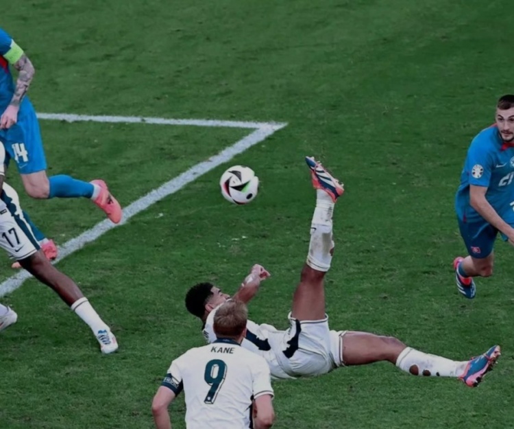 2024年歐洲杯英格蘭與斯洛伐克的1/8決賽上,貝林厄姆倒鉤破門,那一刻,他和他偶像齊達內一樣出眾的身體柔韌性、協(xié)調性展露無遺。