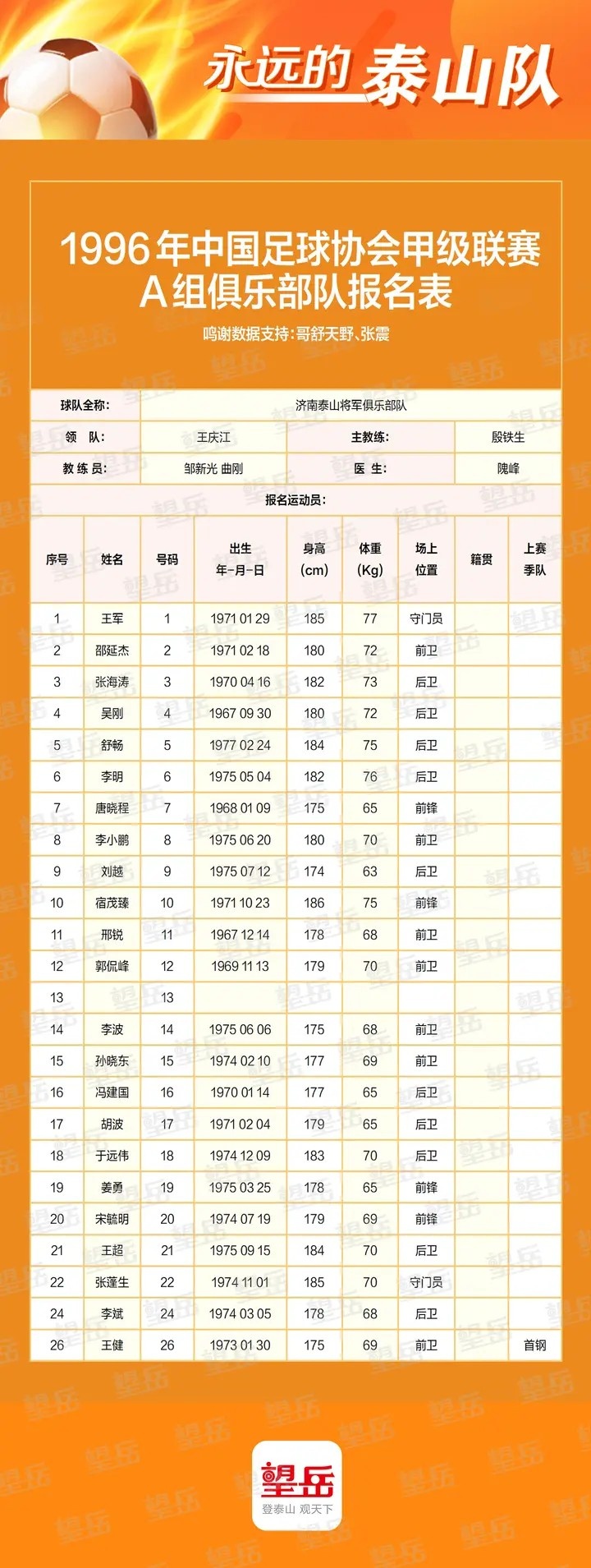 泰山隊(duì)1996年名單和成績(jī)?nèi)缦拢????